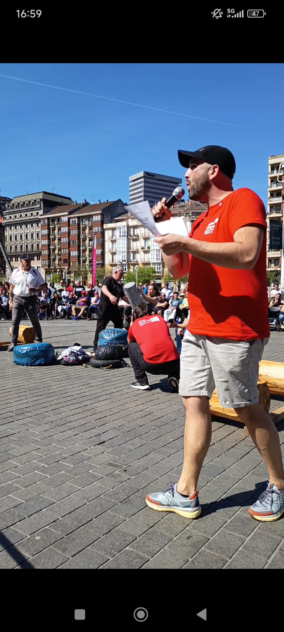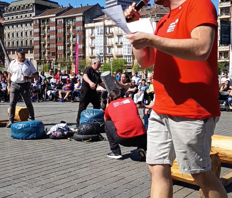 Dinamización de la Plaza de la Cultura Vasca (Muelle del Arenal), acompañando el desarrollo de las exhibiciones deportivas de Herri Kirolak y fomentando la interacción con el público asistente en el marco de Bilbao Basque Fest 2026.