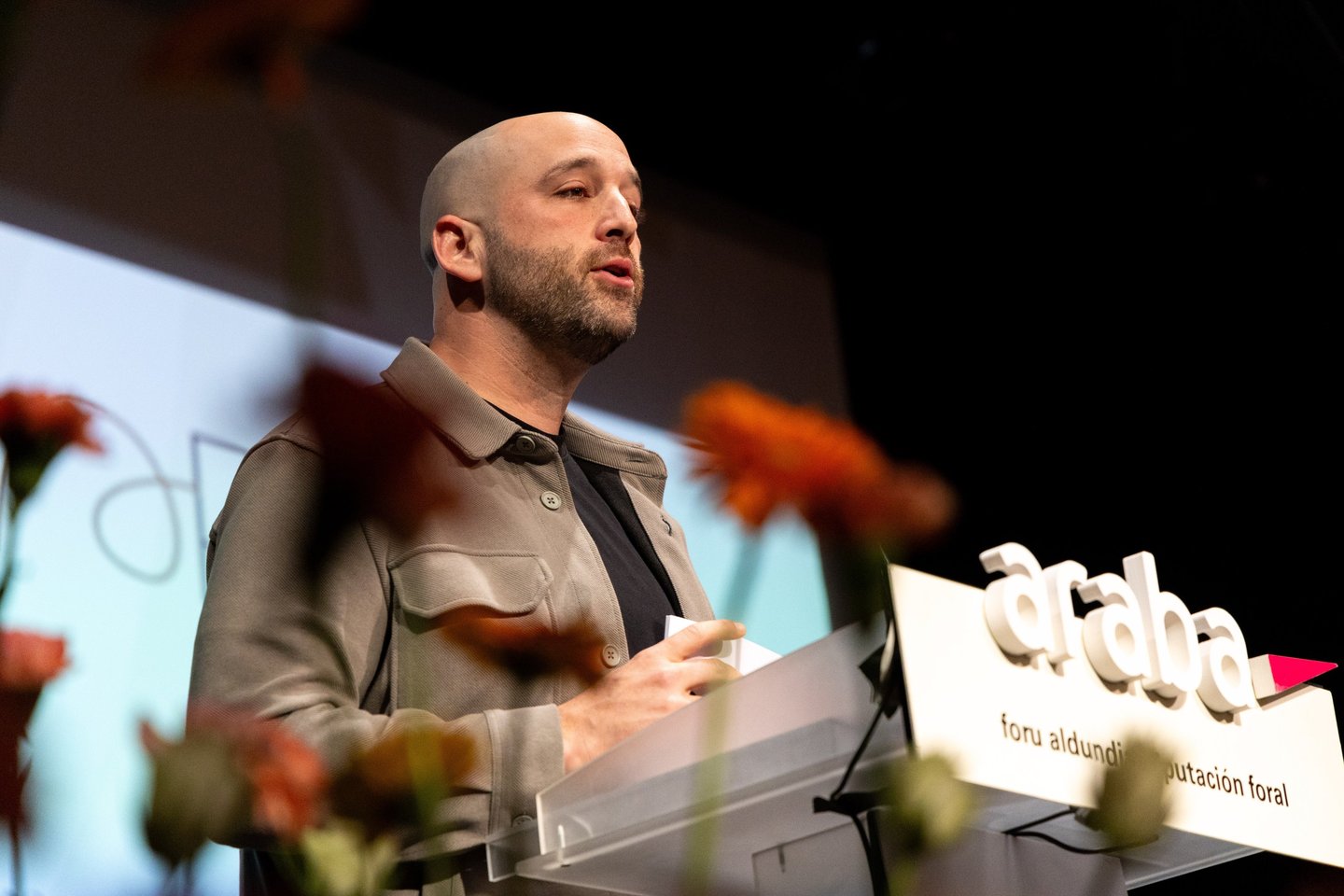 Presentador y dinamizador del acto Nekazaraba Sariak de la Diputación Foral de Álava, guiando la presentación pública de los 5 proyectos premiados en el primer sector y guiando al público en un evento institucional.