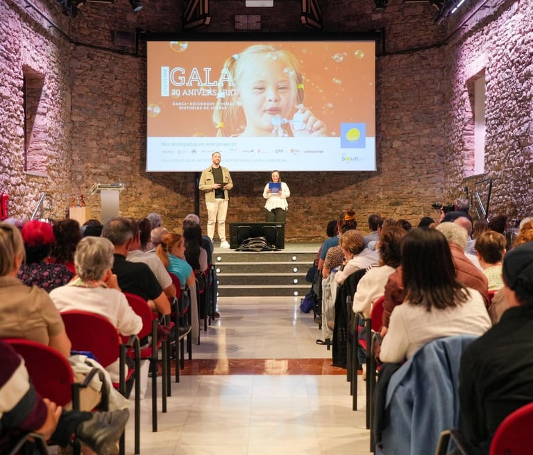 Presentador del acto conmemorativo de los 30 años de Down Araba-Isabel Orbe, dinamizando la gala y acompañando la celebración institucional y social.